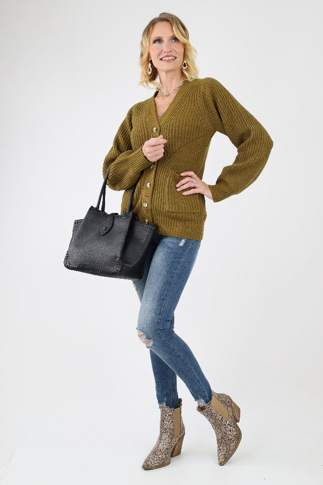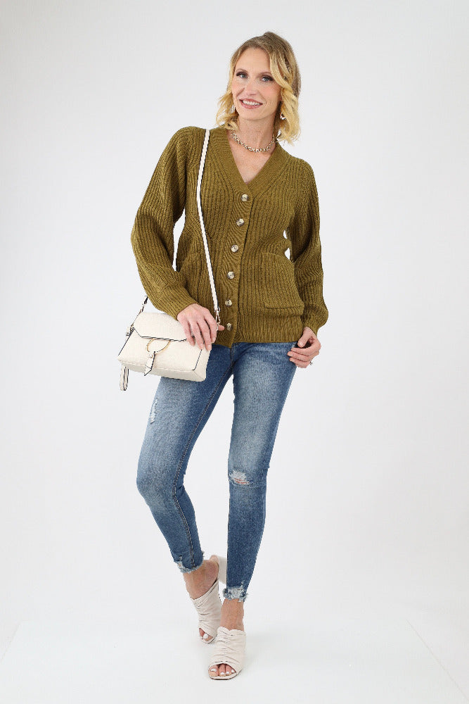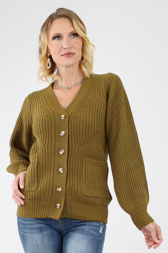Revamp your cozy collection with our V Neck Puff Sleeve Cardigan. The chic V-neck design and playful puff sleeves bring a modern twist to a classic favorite. Whether you're layering up for warmth or making a statement, this cardigan effortlessly combines comfort and style. Embrace a fashion-forward look that's perfect for any occasion.