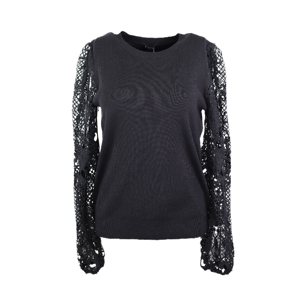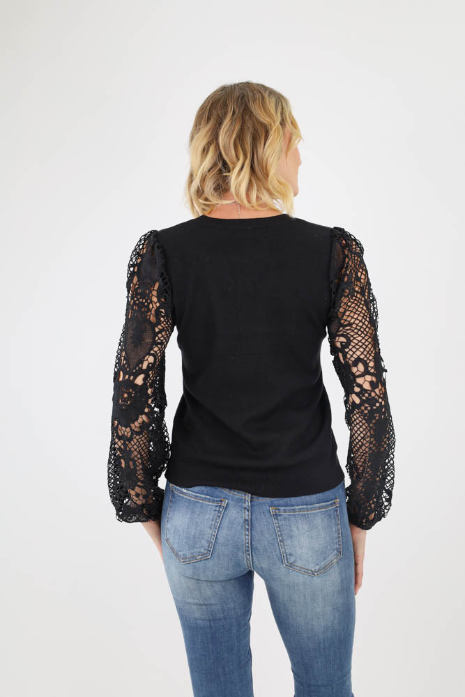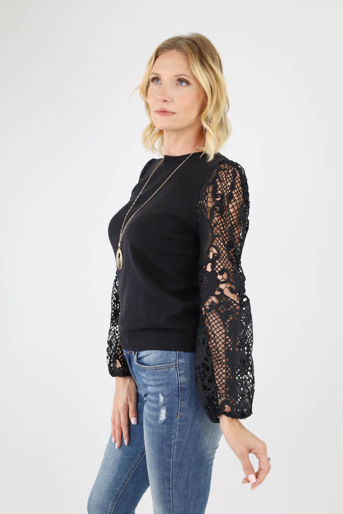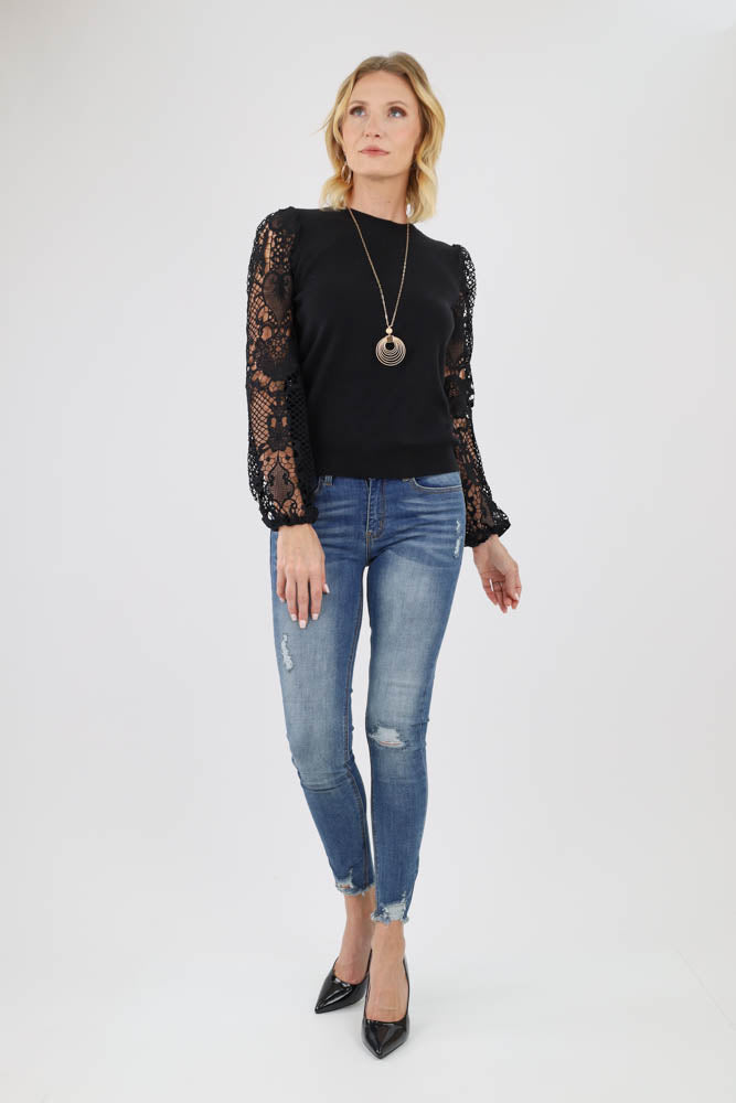 Strut in style with this Lace Sleeve Crew Neck Sweater, your new fall wardrobe essential that you'll want to wear every day. Whether it's for work, pumpkin patch visits, or a simple day out, it's the perfect blend of fashion and comfort for the season.