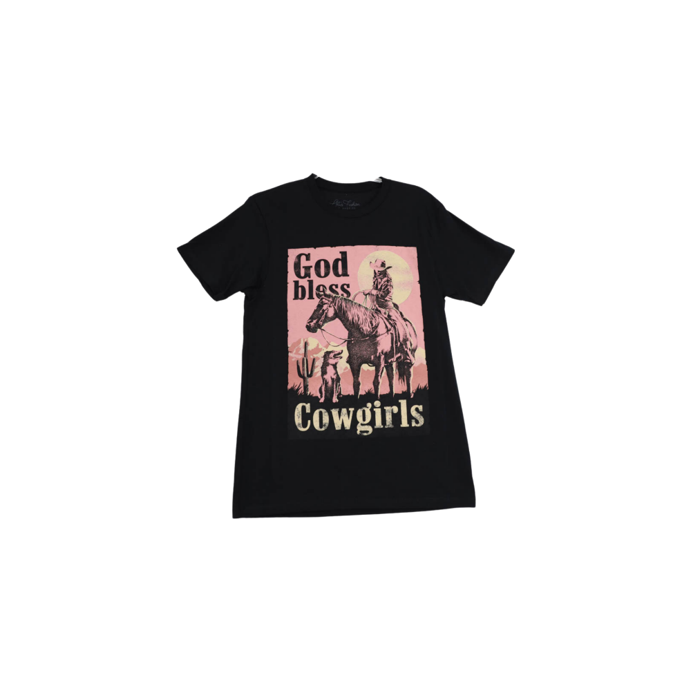 Embrace western charm with our 'God Bless Cowgirls' Graphic Top. This trendy tee celebrates cowgirl spirit with style. Shop now and show off your western pride!