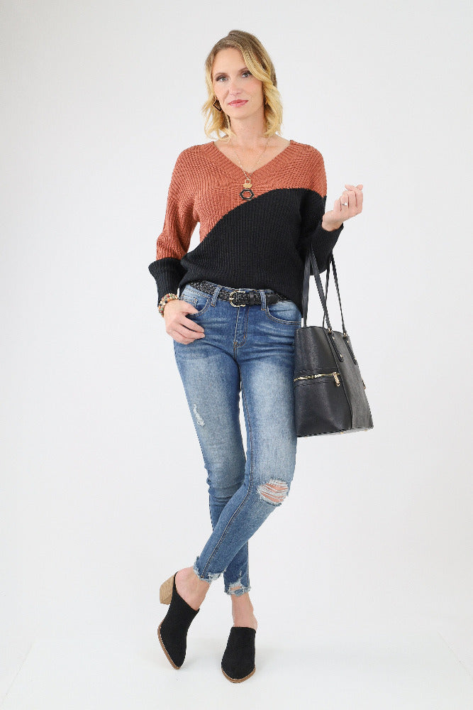Revitalize your style with our Asymmetrical Colorblock Knit! This cozy yet chic knit features modern colorblocking in an asymmetrical design, bringing a playful twist to your wardrobe. Stay on trend with comfort and flair – because who says warmth can't be fabulous?