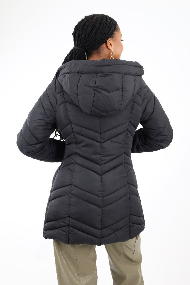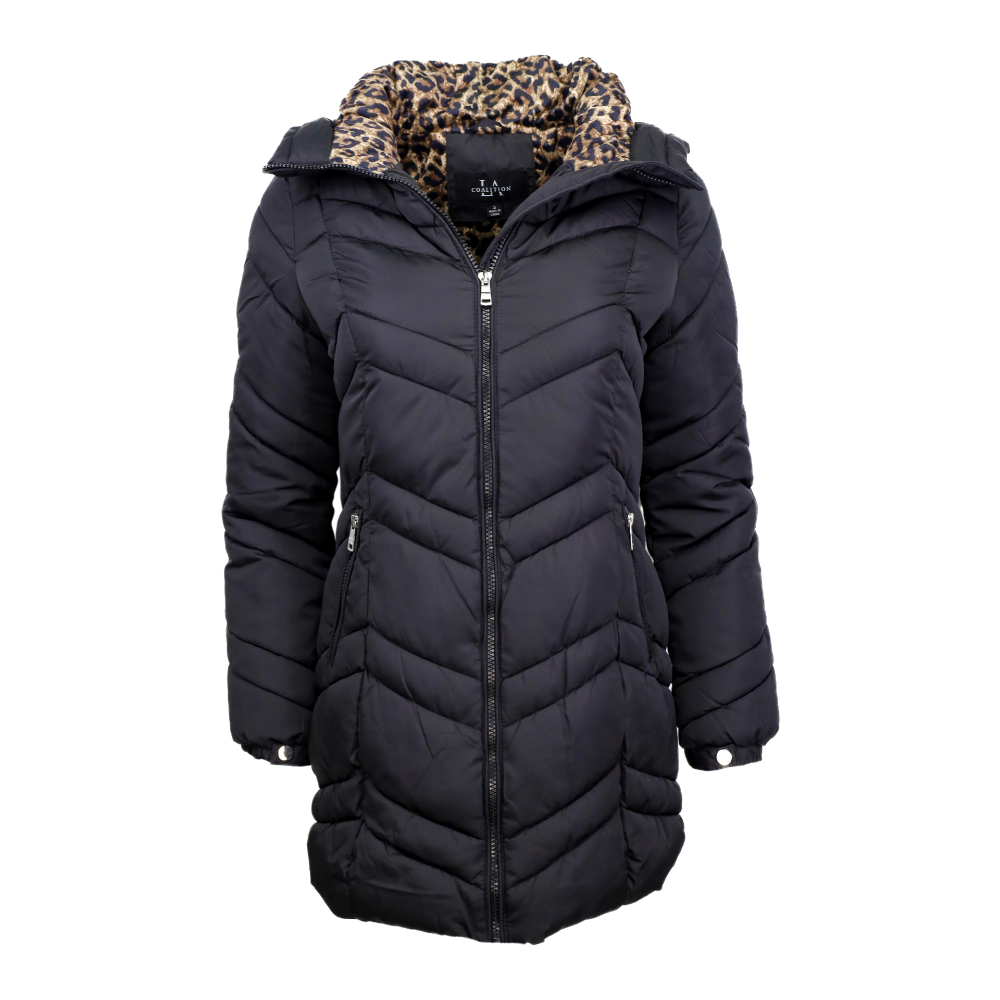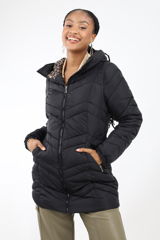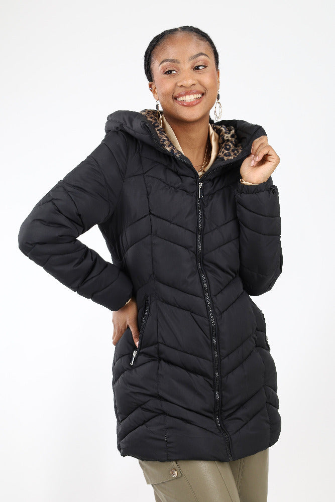 Puffer with Leopard Print Fuzzy Lining -Black