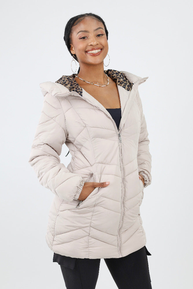 Conquer the winter chill with our Puffer featuring a fierce leopard print fuzzy lining. This jacket is not just about warmth; it's a style statement that merges coziness with bold fashion. Embrace the cold weather with confidence and flair, because staying warm has never looked this chic.