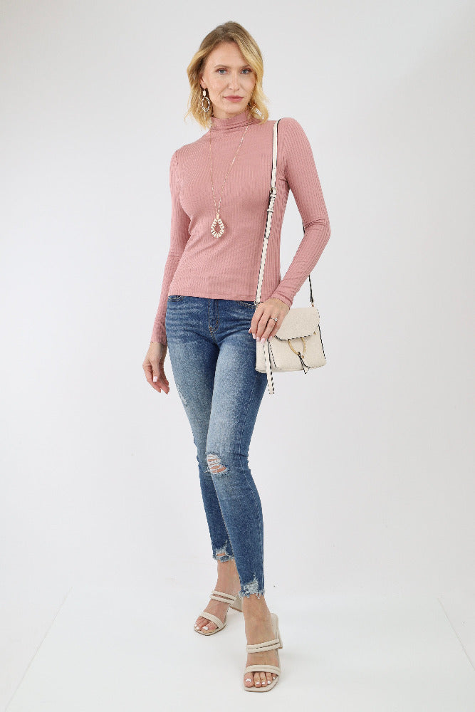 Introducing our Ribbed Mock Neck Top, a versatile essential for your wardrobe. Crafted with comfort and style in mind, this top features a flattering ribbed design and a chic mock neck. Perfect for layering or wearing on its own, it's a must-have for any occasion. Shop now for timeless sophistication and effortless style!