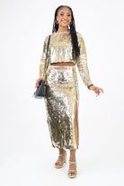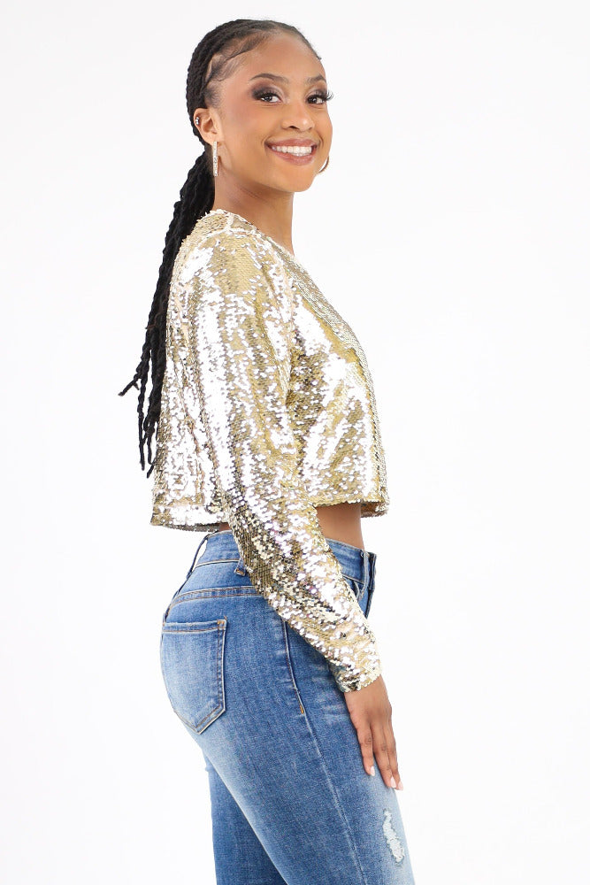 Sequin Long Sleeve Crop Top -Gold
